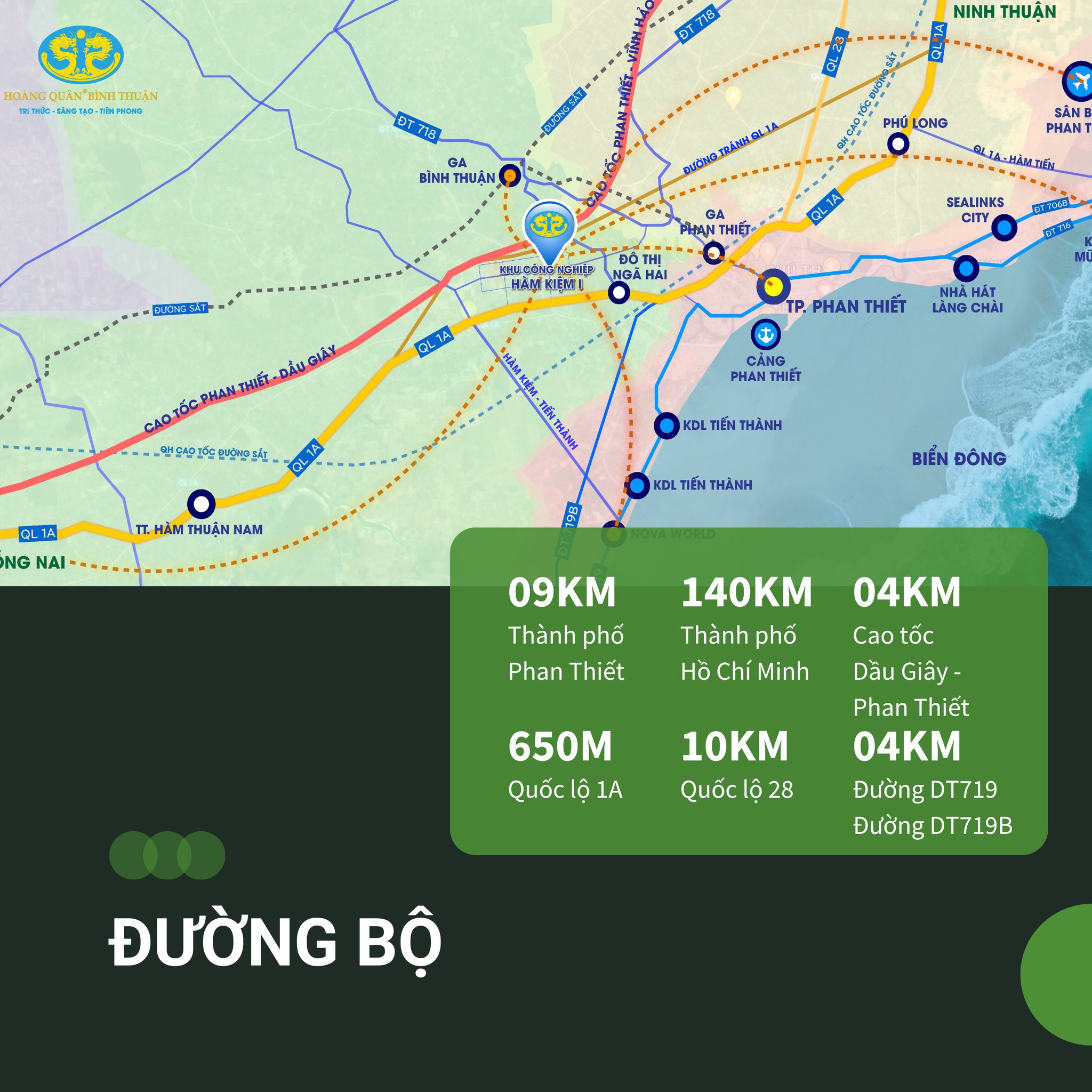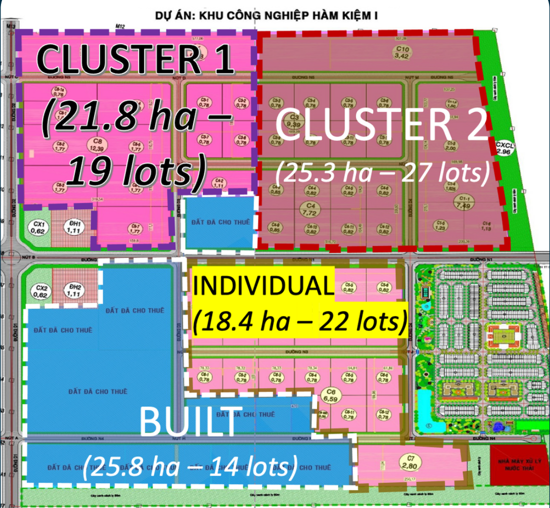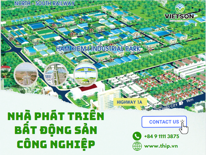 EXCLUSIVE AGENT FOR SELLING or RENTAL LAND IN HAM KIEM 1 INDUSTRIAL PARK, HAM THUAN NAM DISTRICT, BINH THUAN PROVINCE I. OVERVIEW OF HAM KIEM INDUSTRIAL PARK I. Total area is 132.67 hectares. Production land area is: 90.78 hectares. Minimum rental area: 5000 m2. Area: 2ha, 4ha with red book and one-time land rental payment. Industrial park location: – 650m from National Highway 1A; – From Phan Thiet – Dau Giay Expressway Intersection: 4km – 100 km from Vinh Tan General Port – 120 km from Cai Mep – Thi Vai Port – From Phan Thiet Airport: 30 km – From Long Thanh International Airport: 100 km – 174 km from Tan Son Nhat International Airport – 4 km from Binh Thuan Station – 9 km from Phan Thiet Station II. INFRASTRUCTURE OF HAM KIEM INDUSTRIAL PARK I. – Internal road system: 24 – 35 – 45m, Internal roads bear H30 load according to Vietnamese standards. – Power supply system: There is a 110/22KVA transformer station built right in the Industrial Park. Capacity: 2x65MVA. – Clean water supply system: There are 2 factories; Phan Thiet water plant with a capacity of 10,000m3/day and night and Ba Bau water plant with a capacity of 20,000m3/day and night. Main pipe D 200mm – 300mm. – Wastewater treatment system: Capacity 6,000m3/day and night. – Fire protection system: The fire fighting system is designed to meet common standards with pipes measuring D 150mm. III. OTHER COSTS AND INVESTMENT INCENTIVES. – Land prices range from $55-$60/m2 – Management fee: 0.1 USD/m2/year (not including VAT) – Infrastructure maintenance fee: 0.3 USD/m2/year (excluding VAT) – Clean water supply price: 14,000 VND/m3 – Electricity supply price: According to the state’s price framework – Wastewater treatment fee: 0.3 USD/m3. Investment incentives at Ham Kiem 1 Industrial Park: – Corporate income tax incentives: Enterprises enjoy 10-year tax incentives with an export rate of 17%/year, tax exemption for the first 2 years, 50% reduction for the next 4 years. – Support policy of the Industrial Park: The Industrial Park investor supports procedures related to applying for an Investment Registration Certificate, applying for a Business Registration Certificate, recruiting labor, and linking training schools. create human resources for businesses. ——- For further information, please contact the exclusive agent Viet Son Infrastructure Development Joint Stock Company Hotline: 09.1111.3875